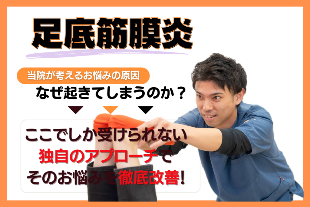 放置すると痛みが慢性化しやすいため、早期に適切な治療を行い、足底筋膜への負担を減らすことが大切です。